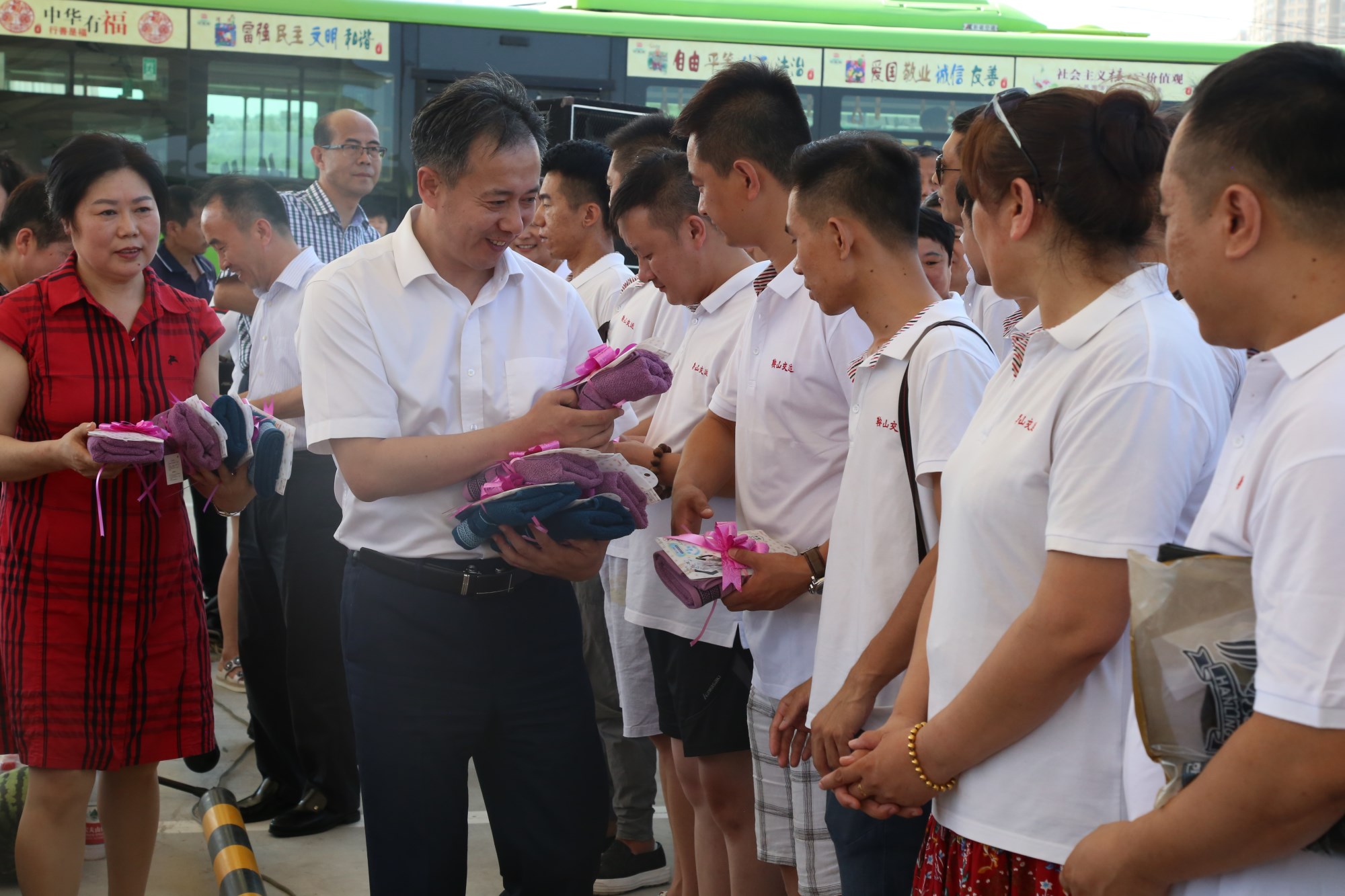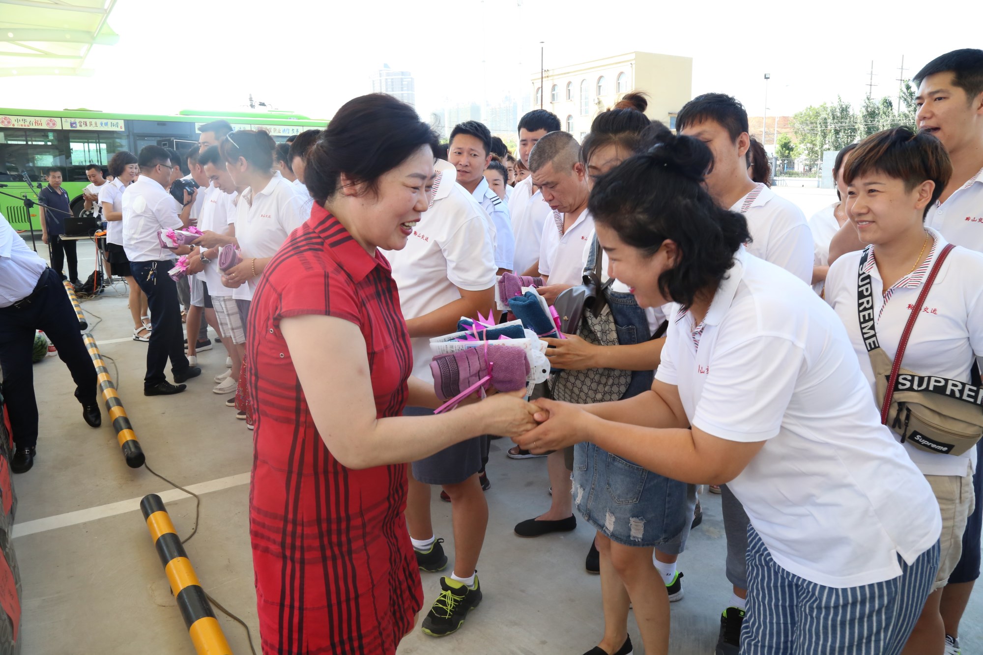 2018年8月1日下午,鞍山市總工會(huì)在交運(yùn)集團(tuán)第二汽車分公司216路終點(diǎn)站舉行了為公交一線駕駛員送清涼活動(dòng)。鞍山市人大常委會(huì)副主任、市總工會(huì)主席解永孚;市總工會(huì)副主席李展程;市國資委黨委書記、主任顧洪新等領(lǐng)導(dǎo)來到216路調(diào)度室看望了交運(yùn)集團(tuán)一線駕駛員,為他們送去夏日里的清涼與工會(huì)組織的慰問。交運(yùn)集團(tuán)黨委書記、董事長(zhǎng)羅玉艷;總經(jīng)理王春江;黨委副書記、紀(jì)委書記、工會(huì)主席金秀石出席了活動(dòng);顒(dòng)中,交運(yùn)集團(tuán)黨委書記、董事長(zhǎng)羅玉艷向市總工會(huì)領(lǐng)導(dǎo)介紹了企業(yè)生產(chǎn)運(yùn)營情況,并代表集團(tuán)職工向市總工會(huì)表示感謝。隨后,市總工會(huì)主席解永孚代表市總工會(huì)對(duì)高溫酷暑中仍堅(jiān)守崗位、辛勤工作的交運(yùn)一線職工致以親切的問候,希望交運(yùn)集團(tuán)廣大職工繼續(xù)發(fā)揚(yáng)艱苦奮斗、愛崗敬業(yè)精神,注意防暑和行車安全,以更好的狀態(tài)投入到工作中服務(wù)好市民乘客,并將市總工會(huì)撥付的2萬元慰問金交到交運(yùn)集團(tuán)董事長(zhǎng)手中。第二汽車分公司2路線駕駛員謝金紅在活動(dòng)中代表一線駕駛員作了表態(tài)發(fā)言。最后,各級(jí)領(lǐng)導(dǎo)在現(xiàn)場(chǎng)親手將交運(yùn)集團(tuán)工會(huì)為一線職工準(zhǔn)備了冰袖、毛巾、西瓜、冰鎮(zhèn)礦泉水等慰問物資發(fā)到職工手中。