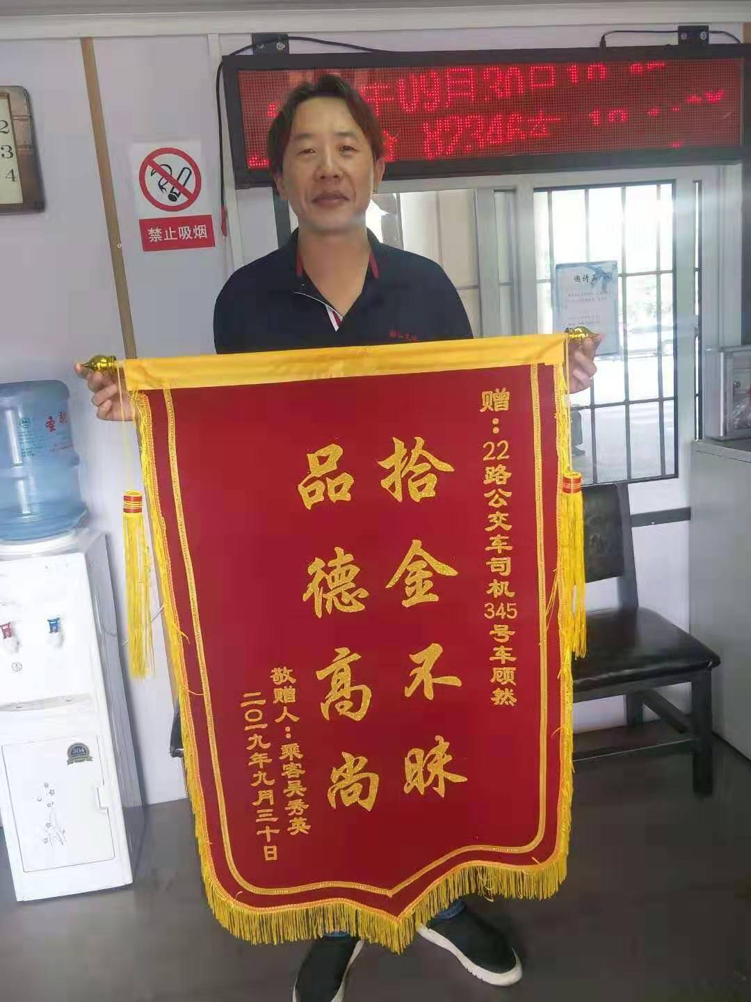 9月30日一大早,家住在鐵西區(qū)的吳大娘手拿錦旗急匆匆來到了公交22線樞紐站休息室內(nèi),找到3080345號車駕駛員顧然師傅,親自將印有“品德高尚,拾金不昧”的錦旗送到他的手中。