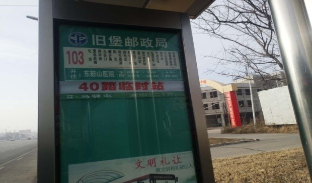 40線(xiàn)站序:明達(dá)世紀(jì)花園 – 鞍山人才市場(chǎng)-米蘭小區(qū) –匯園大道 – 莘英路-長(zhǎng)興街 - 鐵東區(qū)法院- 新?tīng)I(yíng)廣場(chǎng) – 解放東路- 園林大道- 中華南路 - 榮譽(yù)街 - 新華園 - 交通賓館 - 千山區(qū)政府 – 舊堡郵政局(臨時(shí)站)-舊堡 - 千山區(qū)委--馬驛屯