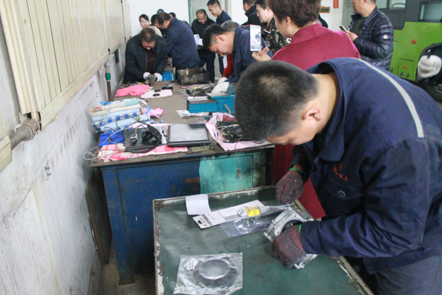 修理工賽區(qū)要求選手們在規(guī)定時(shí)間內(nèi)保質(zhì)保量的將手中的有問題的汽車配件的毛病找到并修好,最后拿到車上進(jìn)行檢驗(yàn)。修理工選手們在各自準(zhǔn)備好自己的修理工具后,隨著一聲哨響,比賽開始,大家有條不紊地熟練的更換著修理工具,拆解著配件,雖然都在默默的忙活著,但能感覺得到一種緊張的競爭氣氛。