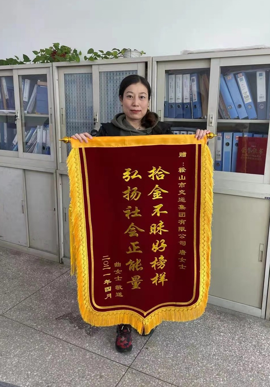 4月15日上午,市民曲女士帶刻有“拾金不昧好榜樣,弘揚(yáng)社會(huì)正能量”的錦旗,送到市交運(yùn)集團(tuán),感謝集團(tuán)員工“唐女士”第一時(shí)間里將拾到的價(jià)值萬余元的蘋果12手機(jī)交還給她。 據(jù)失主曲女士介紹, 4月10日,她在勝利會(huì)堂參加一場(chǎng)培訓(xùn)會(huì),會(huì)議結(jié)束后,才發(fā)現(xiàn)把自己載有重要資料的蘋果12手機(jī)丟失了。除了手機(jī)本身的價(jià)值以外,手機(jī)內(nèi)還存有孩子高考的各種重要資料,一時(shí)心急如焚。她報(bào)著試試看的心態(tài),用別人的手機(jī)拔打自己的號(hào)碼,沒想到立即有人接聽,并表示馬上將手機(jī)送過來。見面后,曲女士再三追問這位好心人的姓名,只了解到“好心人”姓唐,并一再表示無需感謝。曲女士再三表示誠(chéng)意,“好心人”也沒有留電話,只留了微信號(hào)碼。曲女士最終通過翻看其朋友圈,發(fā)現(xiàn)“好心人”是市交運(yùn)集團(tuán)員工。